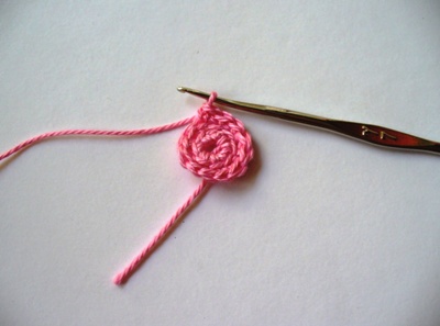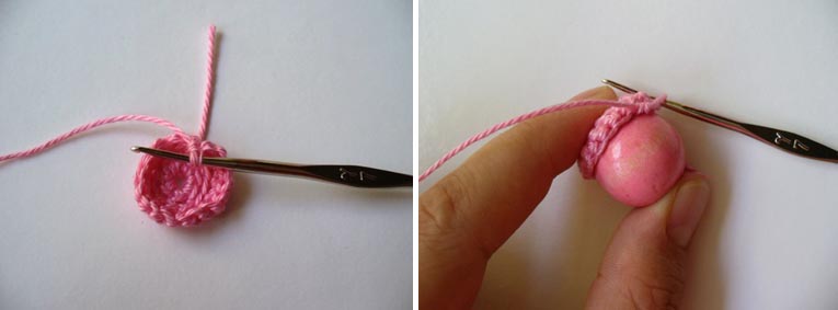 Вяжем до тех пор, пока наш кружок достигнет нужного диаметра, чуть — чуть большего чем диаметр бусины.